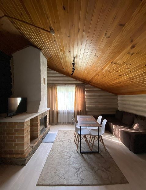 Каждый коттедж оборудован камином, телевидением, кухней с техникой и посудой, а также душевая кабиной с горячей водой. На территории базы отдыха находятся две русские бани с бассейном.