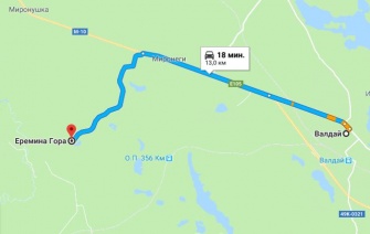 По трассе Москва-Санкт-Петербург до деревни Миронеги (примерно 380 км от Москвы, около 7 км от Валдая в сторону Санкт-Петербурга). Сразу после выезда из деревни Миронеги поворот налево (из Москвы) на деревню Борцово; со стороны Санкт-Петербурга поворот направо. Далее 4 км по гравийной дороге до базы отдыха "Еремина Гора"